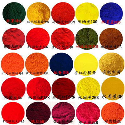 有機顏料不溶于應用介質(zhì),以其特定表面特性的微細顆粒使物質(zhì)著色,其微細顆??捎胁煌奈锢硇螒B(tài),例如:易分散性粉末、擠水轉(zhuǎn)相色膏、水性或溶劑分散劑、顏料制備物(如樹脂色母粒、色片劑型)等。